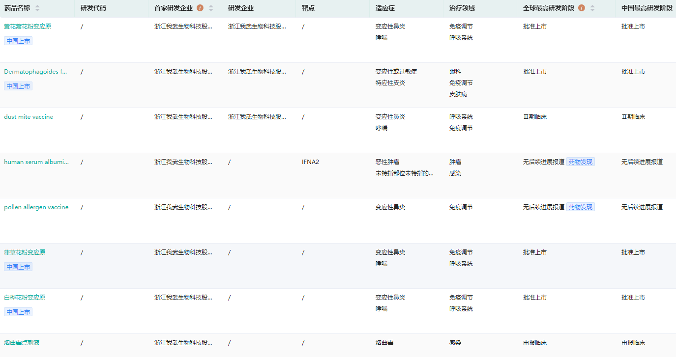 我武生物研发管线查询