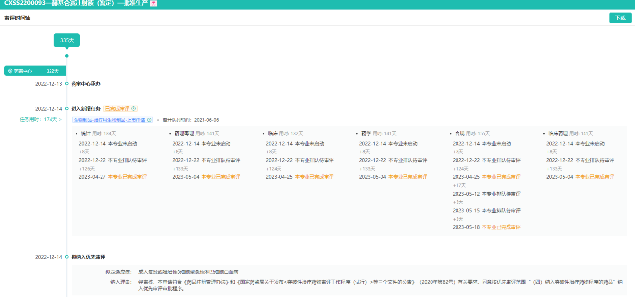 纳基奥仑赛注射液-获批生产审评耗时335天