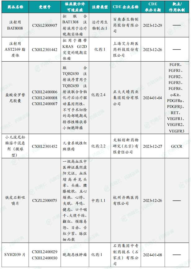 获批临床创新药/改良型新药(部分)信息速览(不含补充申请)