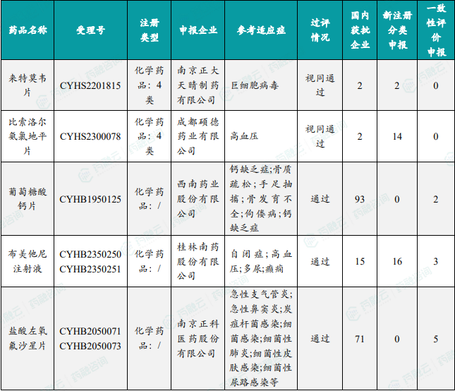 (2)本周过评/视同过评达5家企业品种