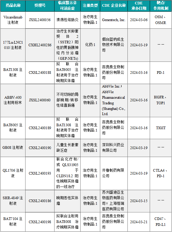 备注:(1)此处未包括补充申请之情形;(2)此处所列创新药/改良型新药,主要是指CDE受理批准的1类、2类、5.1类以及生物制品3.1类和3.2类。(3)更多获批临床信息及研发进展详情及相关靶点全局分析等,可通过摩熵医药中国药品审评数据库获取并下载EXCEL表格。