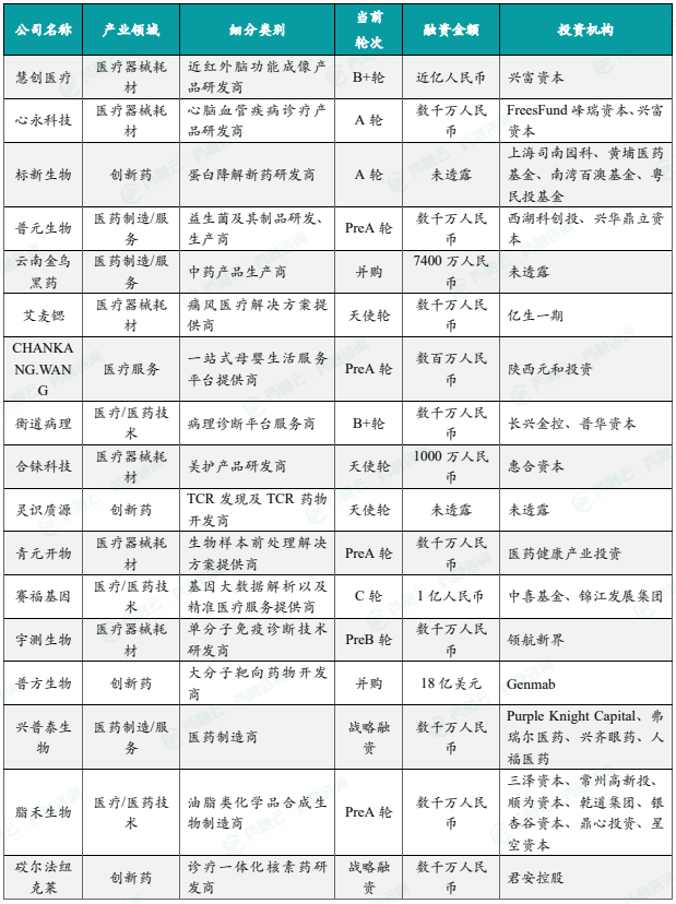 1.4.2 本周国内医药大健康行业投融资速览