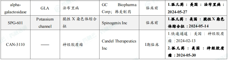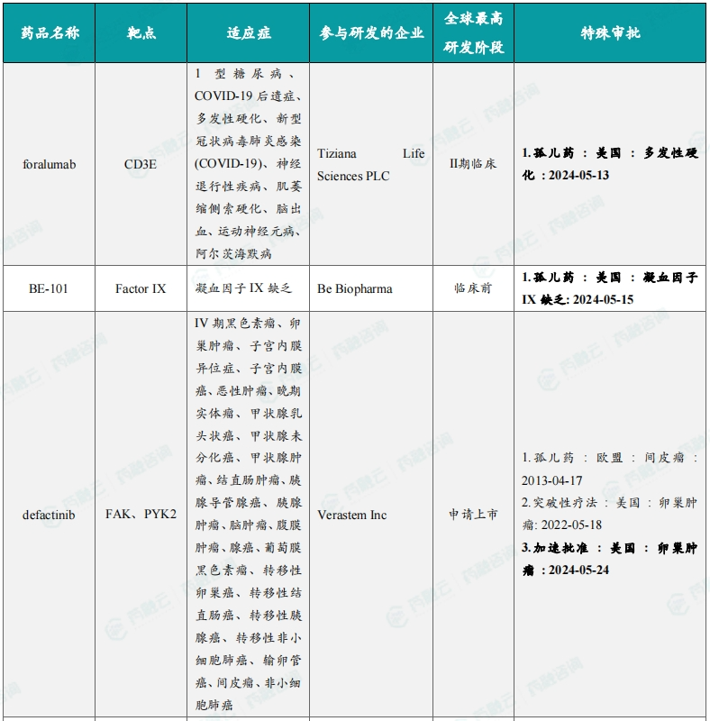 5月全球孤儿药/突破性/快速通道资格认定品种(部分信息)一览表