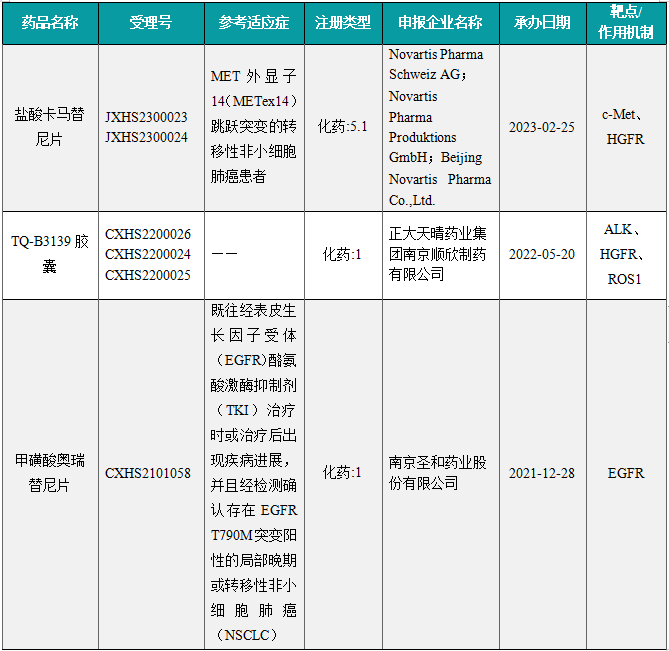 本周共3款新药获批上市,即盐酸卡马替尼片、TQ-B3139胶囊和甲磺酸瑞厄替尼片。6月18日,诺华制药的盐酸卡马替尼片获国家药品监督管理局批准上市,用于治疗MET外显子14(METex14)跳跃突变的转移性非小细胞肺癌患者。公开资料显示,盐酸卡马替尼片是一种口服生物利用度高、高选择性的特异性MET受体酪氨酸激酶抑制剂,可有效抑制MET及MET介导的下游信号蛋白的磷酸化,从而抑制肿瘤细胞的增殖和迁移,并有效诱导细胞凋亡,展现出抗肿瘤活性。