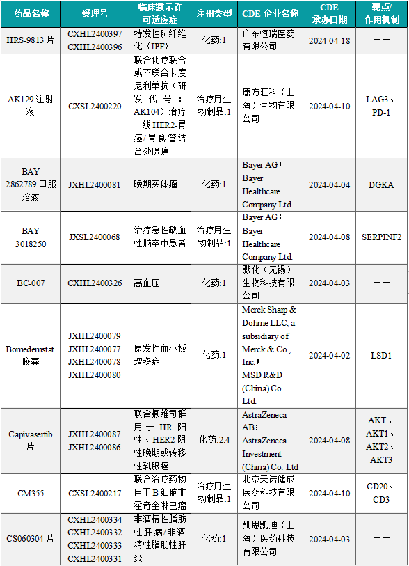 6月17日,CDE官网公示:拜耳与德国癌症研究中心(DKFZ)合作开发的BAY 2862789口服溶液获得临床试验默示许可,用于治疗晚期实体瘤。公开资料显示,BAY 2862789口服溶液为小分子DGKα抑制剂, 可通过抑制DGKα协同增强PD-1/L1的抗癌作用。