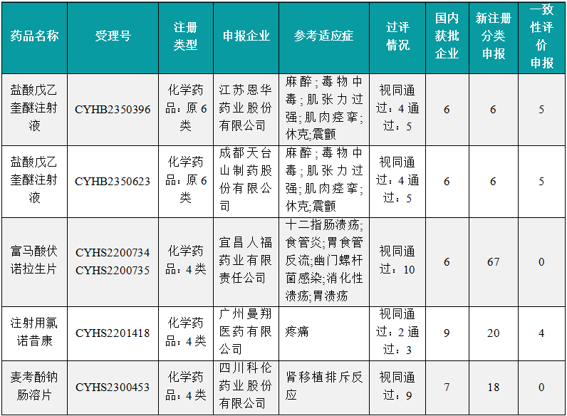1.2.3 本周首次过评/视同过评、过评/视同过评达5家品种盘点