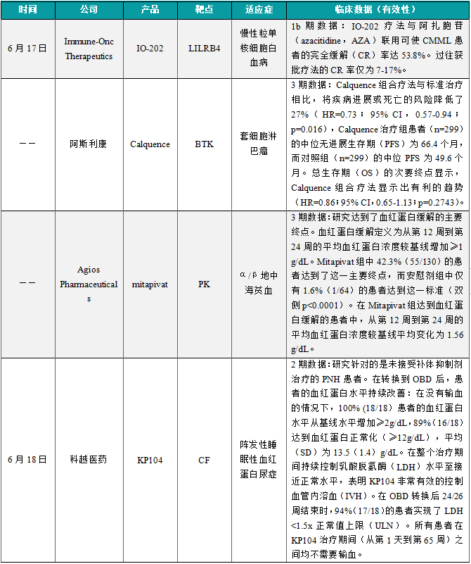 (3)Agios公司mitapivat口服疗法达到3期临床主要终点,今年递交监管申请