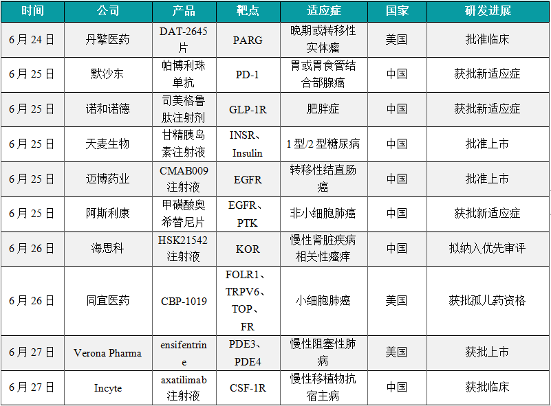 1. 2025年第26周06.24-06.30国内创新药/改良型新药申请临床/获批临床/申请上市/获批上市数据分析
