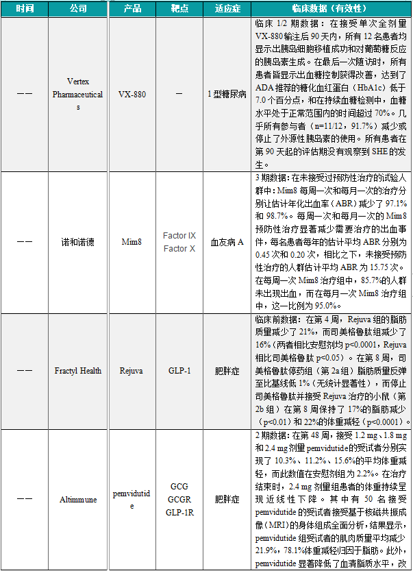 (1)Vertex Pharmaceuticals公布VX-880临床1/2期试验的最新数据,疗效持续逾1年
