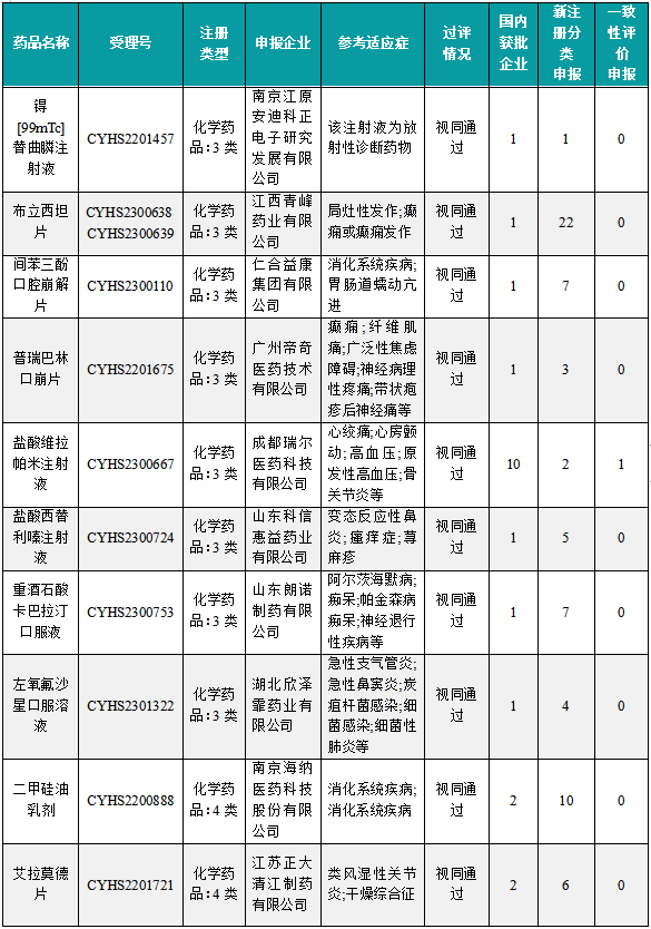 1.2.3 本周首次过评/视同过评、过评/视同过评达5家品种盘点