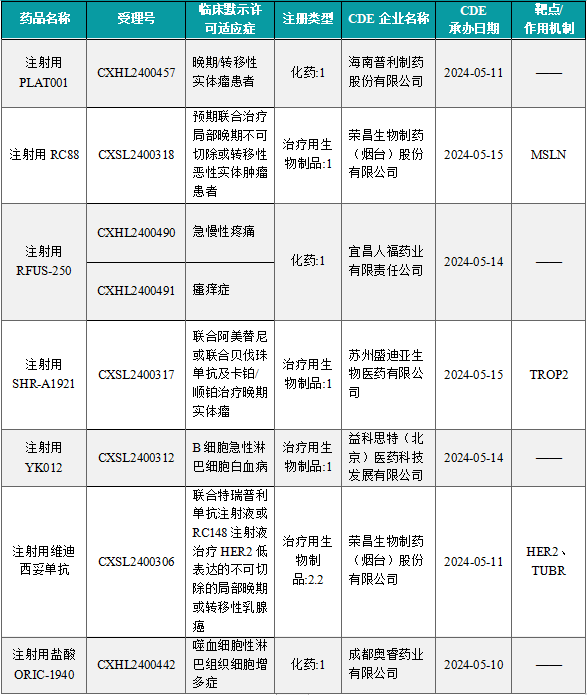 备注:(1)此处未包括补充申请之情形;(2)此处所列创新药/改良型新药,主要是指CDE受理批准的1类、2类、5.1类以及生物制品3.1类和3.2类。(3)更多获批临床信息及研发进展详情及相关靶点全局分析等,可通过摩熵医药中国药品审评数据库获取并下载EXCEL表格。