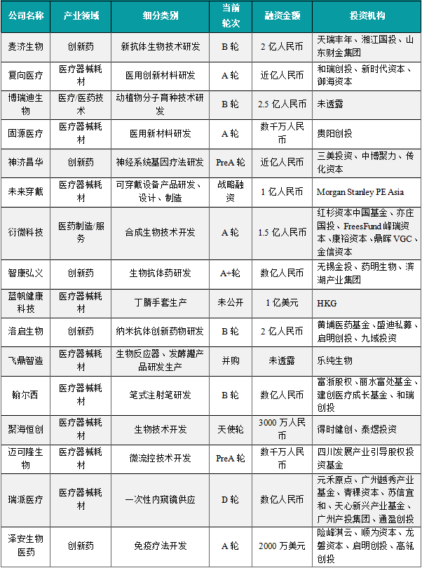 1.4.2 本周国内医药大健康行业投融资速览