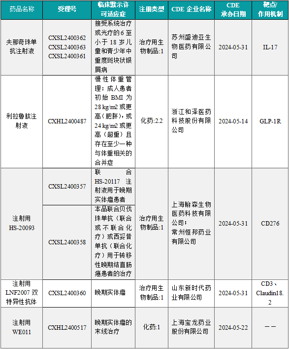 1.1.2 本周获批临床创新药/改良型新药信息速览(不含补充申请)