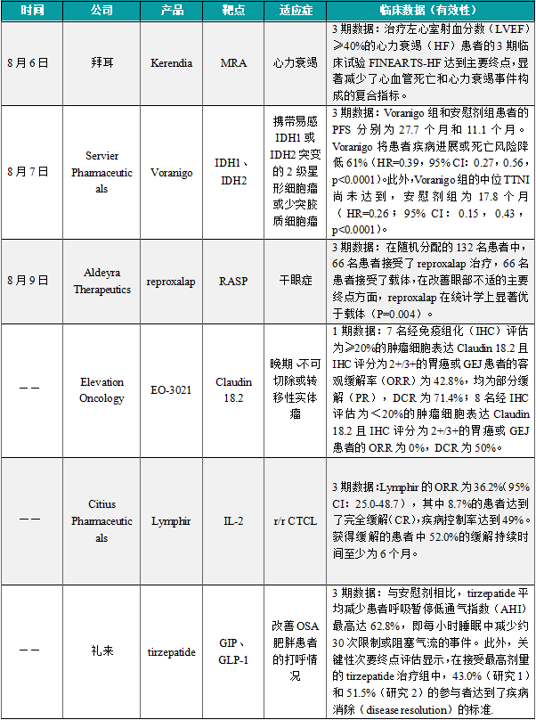 (1)拜耳公布“first-in-class”疗法Kerendia 3期临床结果
