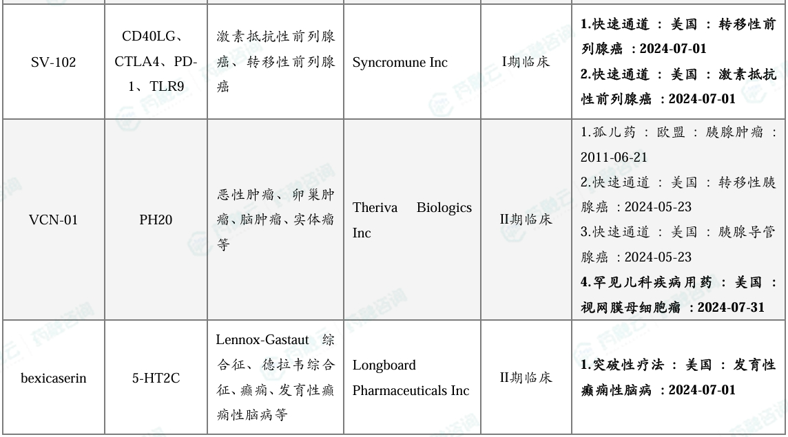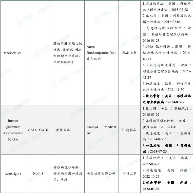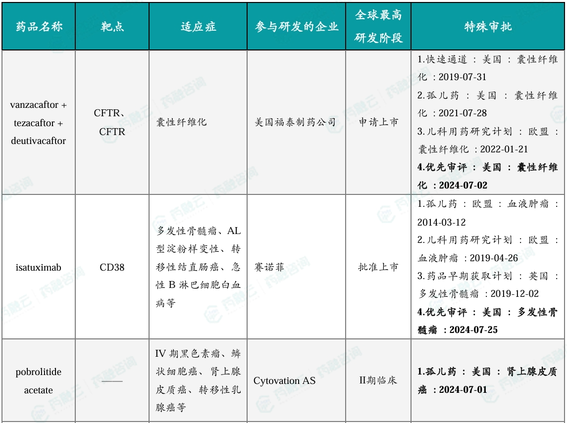 7月本月全球孤儿药/突破性/快速通道资格认定品种(部分)一览表