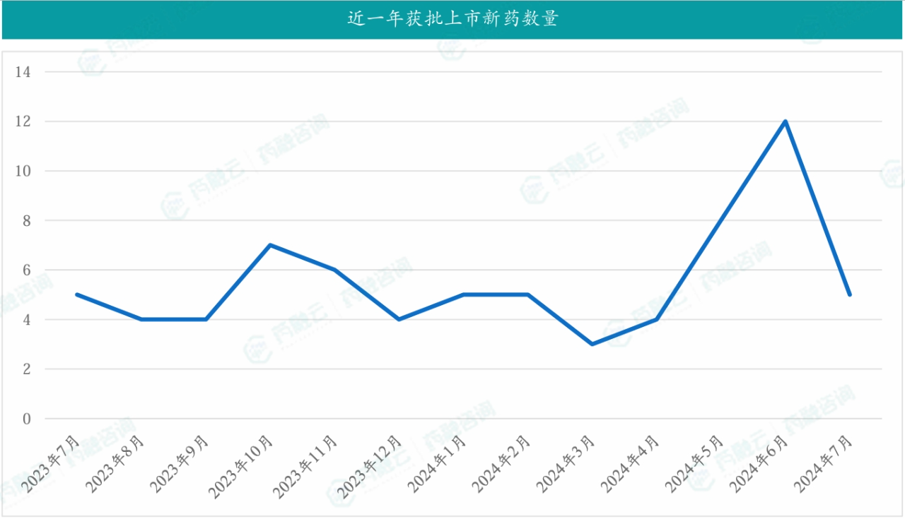 在7月份,国内医药市场迎来了五款创新药物的正式获批上市,涉及药华医药的Ropeginterferon alfa-2b(P1101)注射液,用于治疗真性红细胞增多症。第一三共的苯磺酸美洛加巴林片,适用于神经病理性疼痛。阿斯利康的布地奈德富马酸福莫特罗吸入气雾剂,适用于慢性阻塞性肺疾病、哮喘。信立泰的苯甲酸复格列汀片,用于治疗2型糖尿病。诺华的注射用培图罗凝血素α,适用于成人和儿童血友病A(先天性凝血因子VIII缺乏)患者:按需治疗及控制出血事件;围手术期管理;常规预防治疗以防止或减少出血事件的发生。