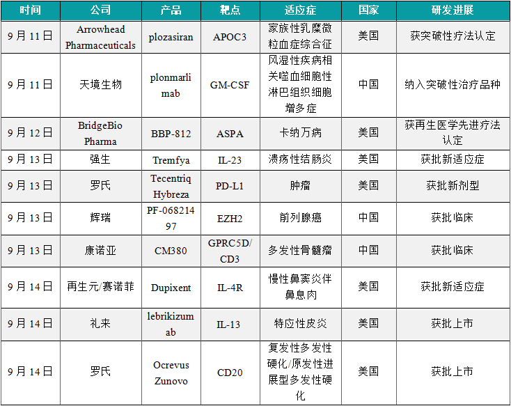 9月11日,CDE官网公示,天境生物申报的1类新药普那利单抗注射液拟纳入突破性治疗品种,针对适应症为复发难治性风湿性疾病相关噬血细胞性淋巴组织细胞增多症(R/R MAS)。公开资料显示,GM-CSF是一种重要的细胞因子,在自身免疫性疾病的慢性炎症和损伤中发挥重要作用,中和GM-CSF可以抑制炎症反应并让患有类风湿关节炎等自身免疫疾病的患者临床获益。据天境生物公开资料介绍,普那利单抗注射液是一款抗人粒细胞巨噬细胞集落刺激因子(GM-CSF)的中和抗体,具有高亲和力,可特异性结合GM-CSF,并能阻断GM-CSF与其受体结合,从而阻断下游的信号传导和靶细胞激活。
