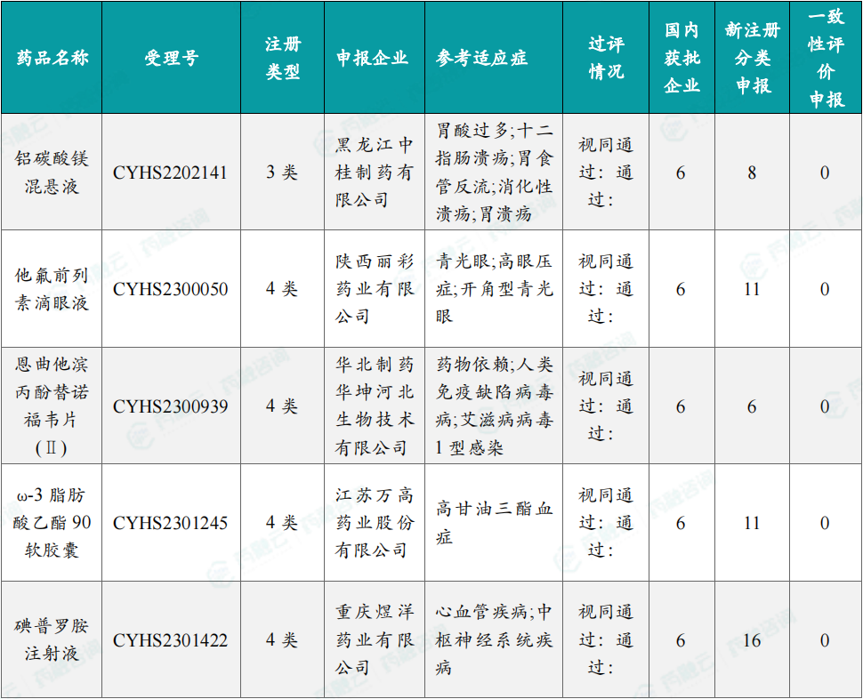 1.2.3 本期首次过评/视同过评、过评/视同过评达5家品种盘点