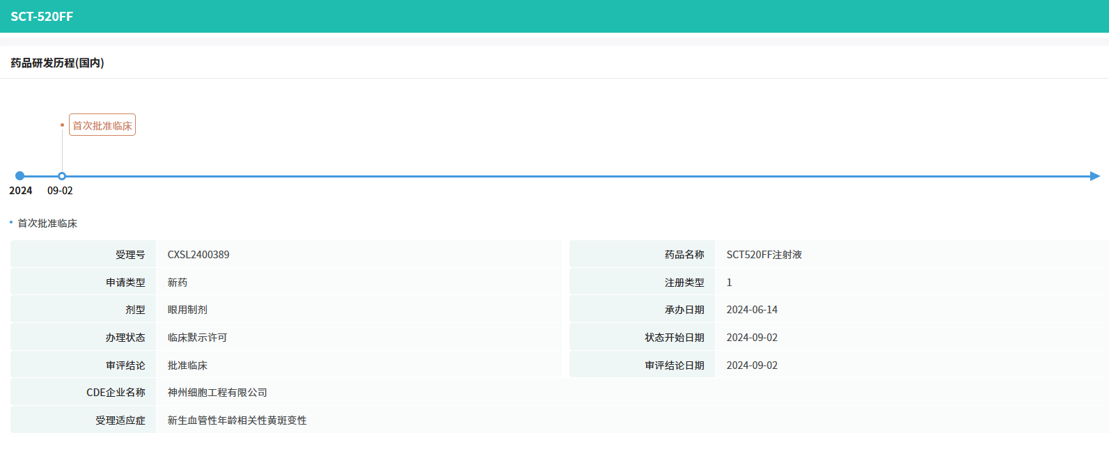 紧接着,神州细胞1类新药SCT520FF注射液获批临床,适应症为新生血管性年龄相关性黄斑变性。年龄相关性黄斑变性(AMD)是一种潜在进展性黄斑病变,是老年人中央视力不可逆丧失的最常见病因。公开资料显示,SCT520FF注射液是神州细胞自主研发的一款抗血管生成生物药。