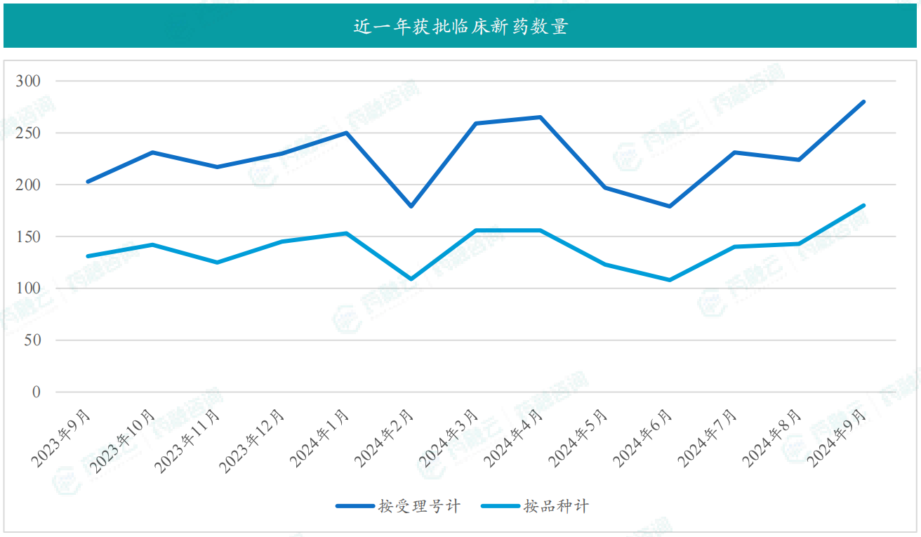 - 9月共有180款新药获批临床;