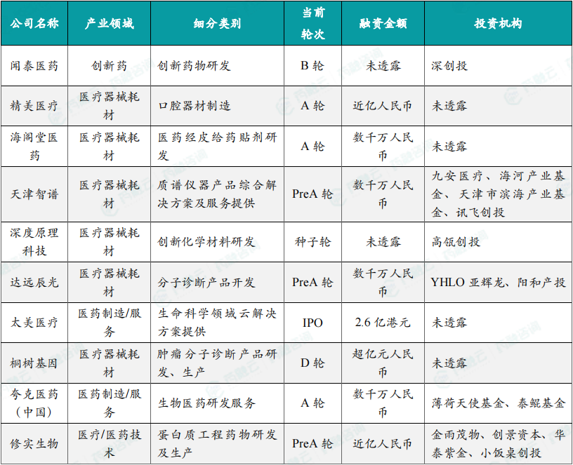 备注:更多信息如公司简介、历史融资信息、所在地区、最新融资时间等,可通过药融云投融资数据库获取并下载EXCEL表格。