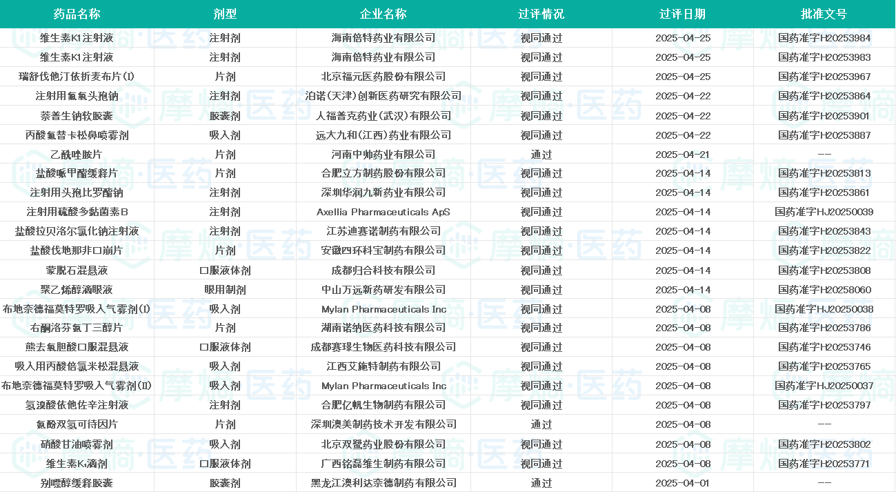 一、4月首家过评药品清单