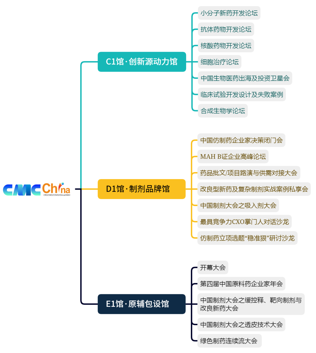 大会开放各类专属支持方案及超300个现场展位,可为生物药/化学药相关新药/仿制药药学研发机构CRO/CDMO、临床用药生产基地、CMO/MAH生产承接企业、临床试验机构、第三方稽查机构、制药装备企业、辅料生产/代理机构、注册咨询机构、海外药品研发机构、临床试验机构、杂质对照品、参比制剂、第三方检测机构、实验室工程、实验室设备、分析设备、生产设备、知识产权等企业提供展位、演讲、联合主办、晚宴冠名、项目路演、卫星会、明星打造等多形式的宣传展示: