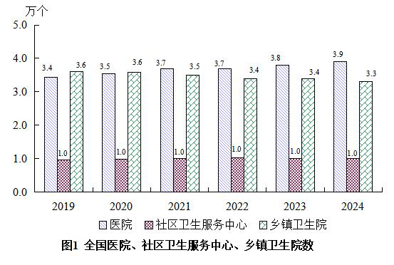 (一)医疗卫生机构总数。2024 年末,全国医疗卫生机构总数 1093551 个,比上年增加 22766 个。其中:医院 38710 个,基层医疗卫生机构 1040023 个,专业公共卫生机构 10547 个。与上年比较,医院增加 355 个,基层医疗卫生机构增加 23785 个。