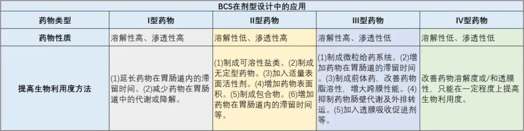 表 BCS在剂型设计中的应用