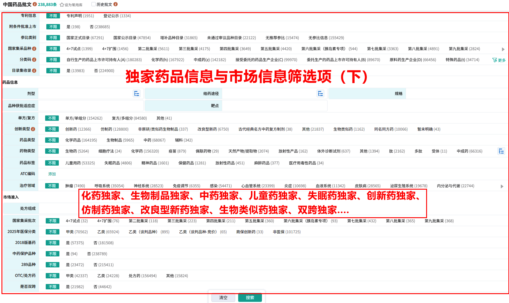 以上就是高潜力独家药品品种的筛选方法,也有一些如独家创新药、独家仿制药、独家改良型新药与独家一致性过评筛选功能值得大家去了解,这便于高效详尽地了解某一品种的基本属性及市场竞争态势,还能分析企业自身、竞争对手或目标企业的产品结构、产品独特性及产品竞争力,深刻了解医药研发及市场动向。