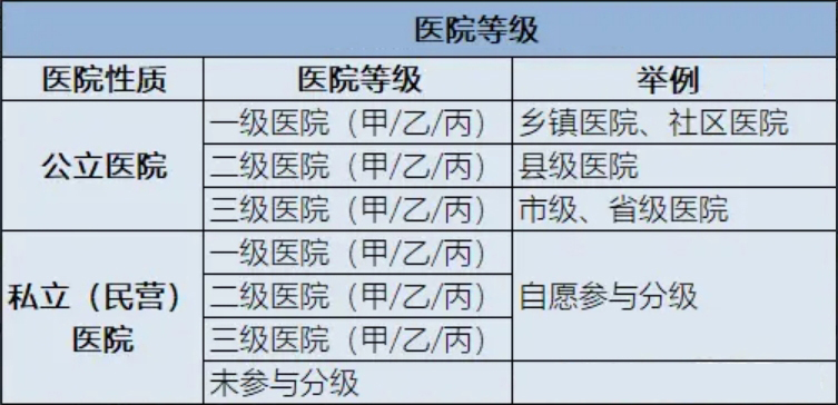 三级医院:跨地区、跨市、跨省、面向全国提供医疗卫生服务的医院,如市医院、省医院和更高等级的医院。