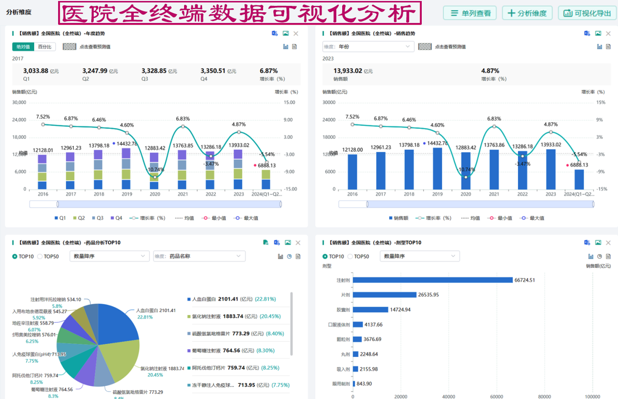 众所周知,了解分析医院药品销售数据,可以知晓哪些药品销售最好,研究客户购买行为和趋势,并利用这些信息制定销售策略。这有助于企业及时调整产品线,开发和推广有潜力的药品,从而在竞争激烈的市场中占据优势。
