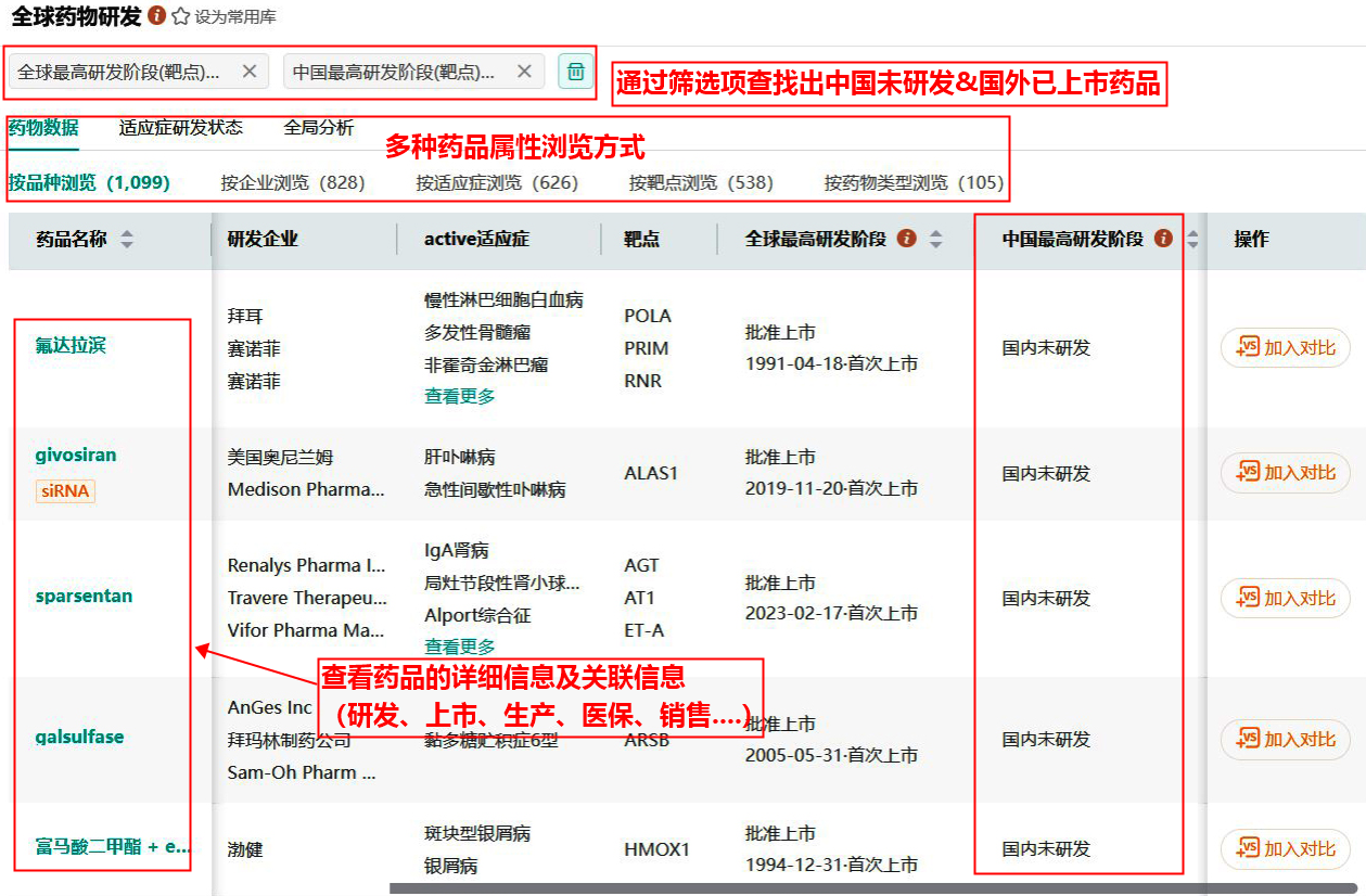 图源:全球上市药品数据库-搜索筛选页面