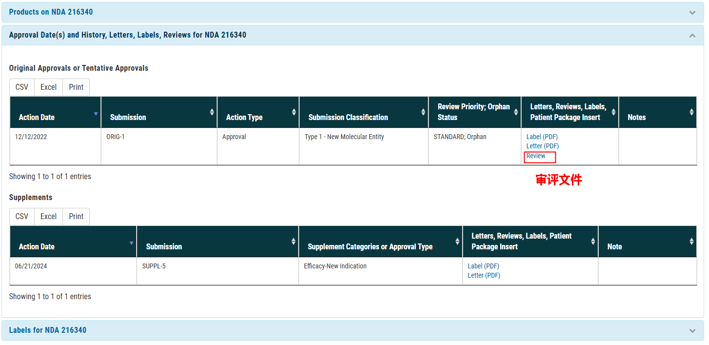 展示结果如下图,出现很多文件链接,其中红圈中的Review为审评文件链接。