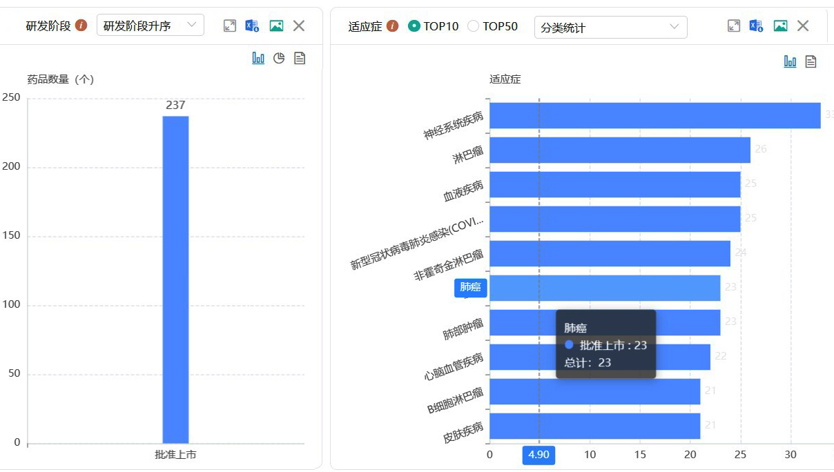 注:该数据库新药包含创新药、改良型新药、生物类似药、改良型生物制品、改良型疫苗,如需严格分类则要勾选对应筛选项。