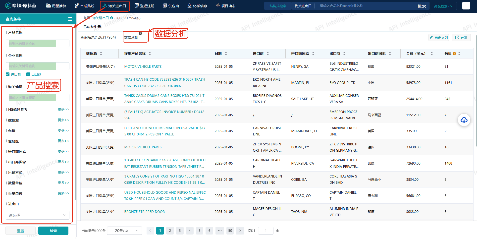 ①摩熵原料药-海关进出口数据库