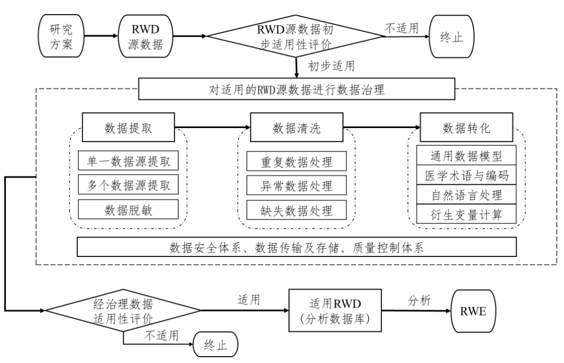 图:真实世界数据的适用性评价和数据治理过程示意图