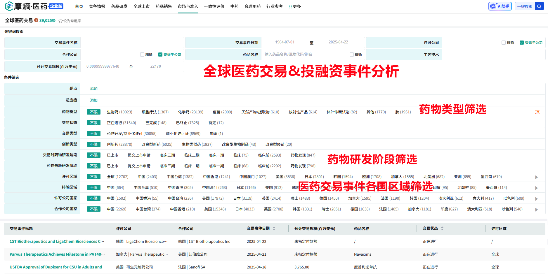 图源:摩熵医药-全球药物研发数据库-搜索筛选界面
