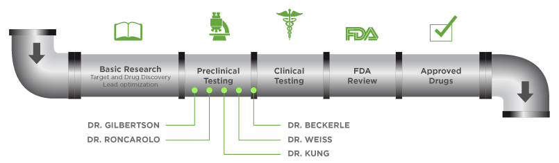 研发管线通常涵盖药物从概念到上市的完整生命周期,主要阶段包括: