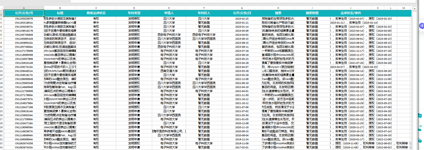 事情是这样的,作为清澈且有点不太愚蠢的大学生,我最近收到任务,需要对四川省内高校在合成生物学领域的专利情况做一个系统性了解。但是查询专利,这对我这种小白来说可太茫然辣!!!