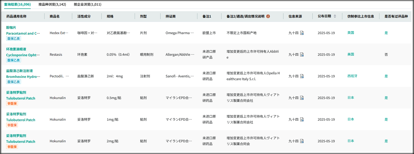 摩熵医药平台收载了日本橙皮书全部内容,并规整汉化其语言,可通过其日本橙皮书数据库查看日本参比制剂信息,另外还免费公开了美国橙皮书、中国仿制药参比制剂目录、参比制剂备案等仿制药相关数据库及分析工具,对于查询主流国家的参比制剂目录信息使用价值非常之高,当然本文最后也会介绍其查询技巧。