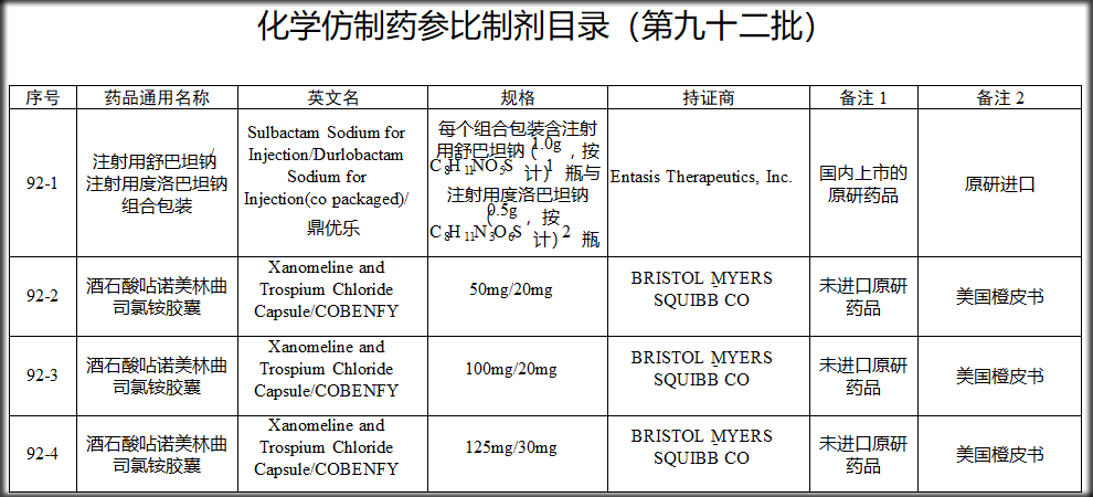 图源:NMPA第九十二批参比制剂目录截图