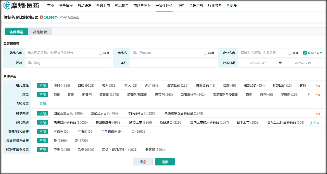 四、摩熵医药-参比制剂目录数据库查询(医药专业常用网站)