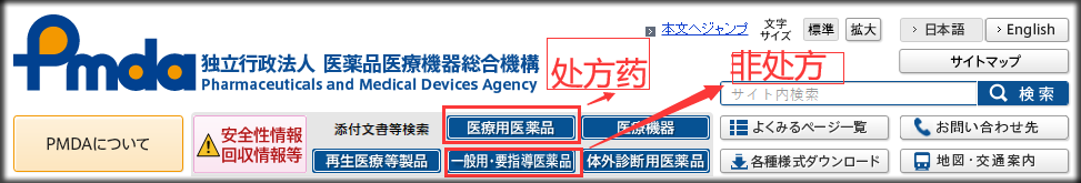 →检索药品(使用日语)