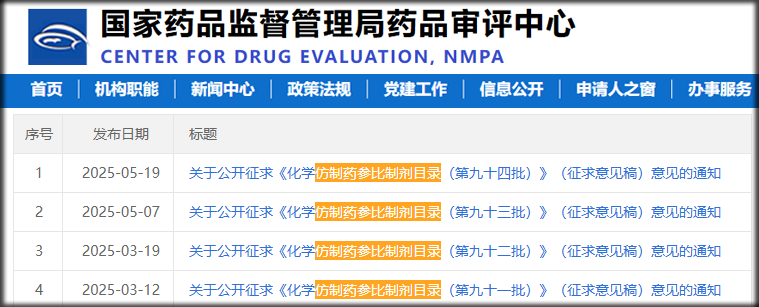②而在CDE官网查询与NMPA不一样的是,进入网站首页搜索’仿制药参比制剂目录’,查询结果为各批次目录的征求意见稿。