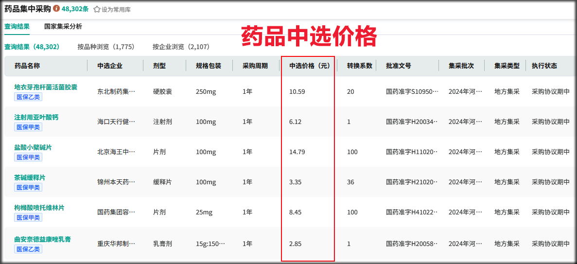 摩熵医药的药品集中采购数据库则是收集了国家药品集采中选价格和地方集采中选价格,按药品名称和企业名称对信息进行多角度汇总整理,提供药品名称、最小单位价格、规格、剂型、报量、各省供应量等多个维度信息,帮助大家一览整个报量、中标以及供应的结果,为下一次的集中采购提供参考。专业人士可通过这个数据与药品一致性评价数据分析出企业及产品的竞争力和集采资格,辅助药品价格决策。