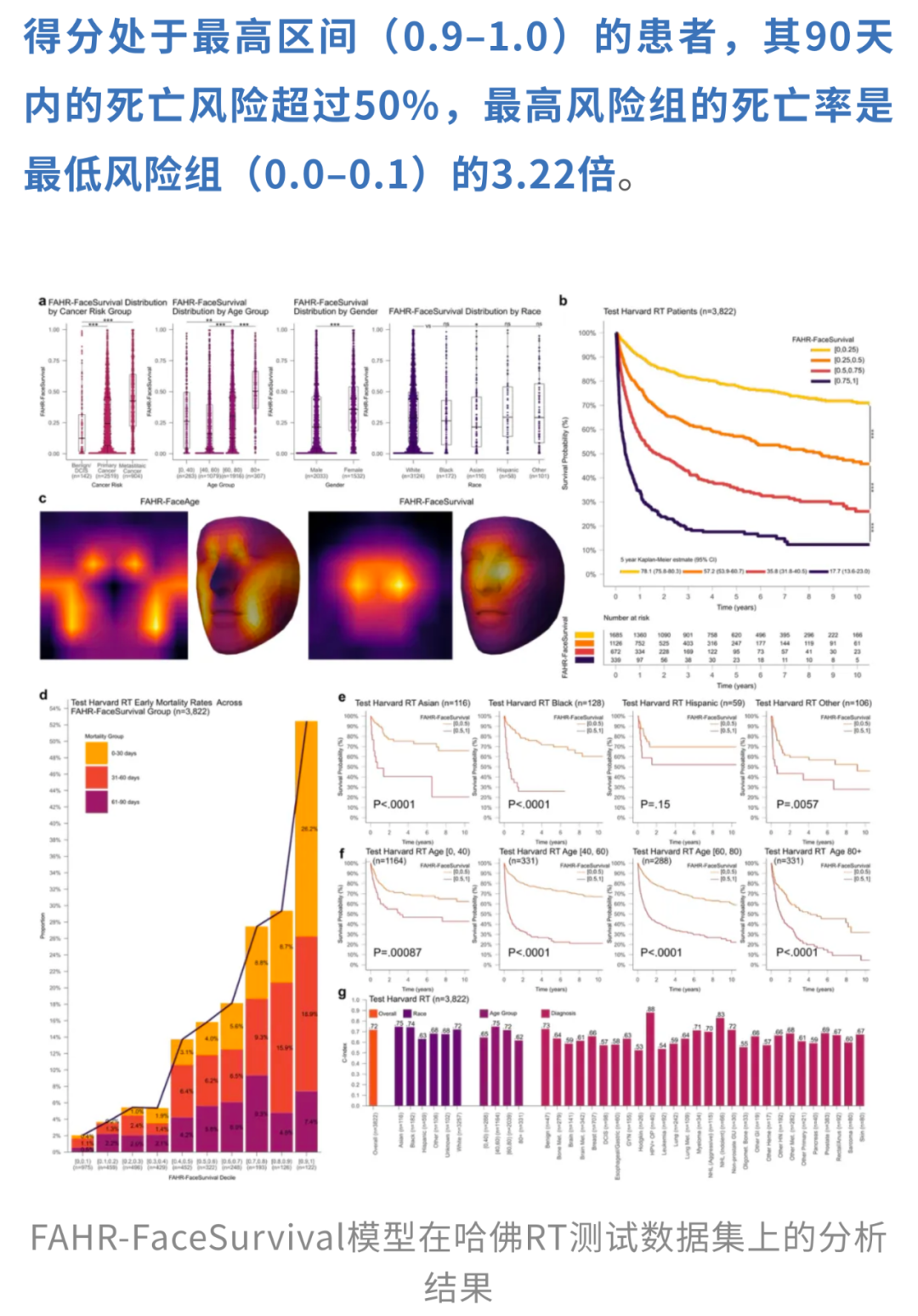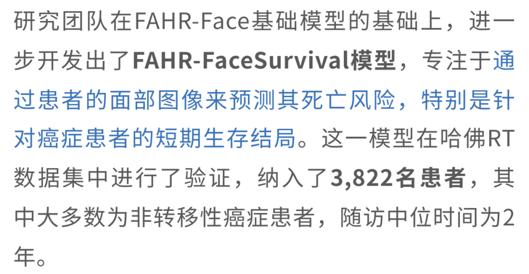 研究人员进一步指出,从临床应用的角度来看,FAHR-FaceAge通过一个简单易懂的“面部年龄差”(FAD,单位为年)来直观呈现个体的生理老化状态,不仅可以用来动态追踪健康变化,还能作为风险分层的依据;而FAHR-FaceSurvival则专注于短期死亡风险的预测,能够根据不同的临床需求灵活应用。