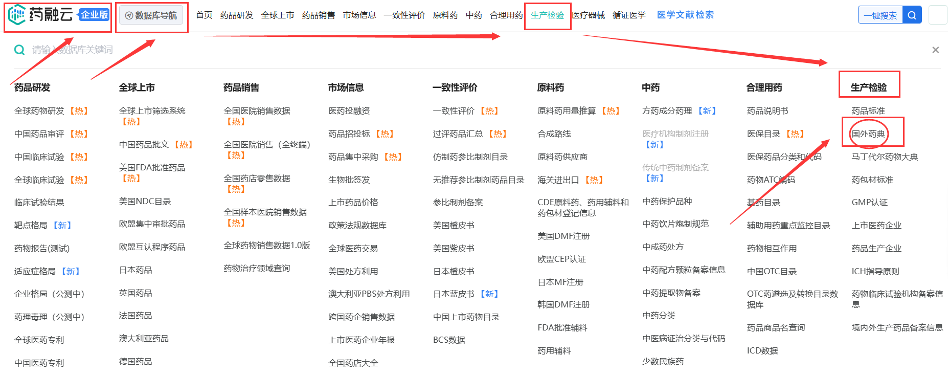 目前药融云数据库收载了英国药典等多个国家最新的药典数据近30万条,其中包括英国药典、中国药典、美国药典、欧洲药典、日本药典、印度药典、国际药典、巴西药典、法国药典、韩国药典的多个版本。