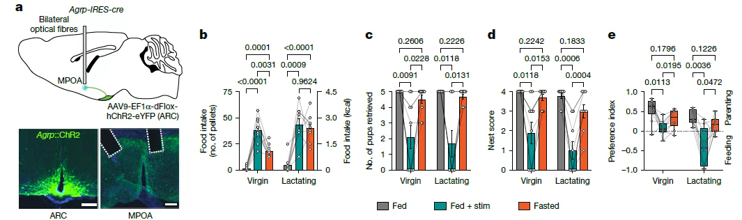 这种“饿了也先顾娃”的行为,暗示哺乳期母鼠存在一种“反饥饿”的行为偏好。但大脑是如何实现这种复杂平衡的?