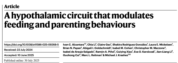 近期两篇分别发表于《Science》和《Nature》的两项重磅研究,几乎同时指向了脑中的一个小小区域——下丘脑,它们共同揭示了“母亲大脑”如何被激素和神经网络联合重塑,并如何在“育儿”与“进食”这两种基本生存需求之间,做出艰难而精准的优先级抉择。